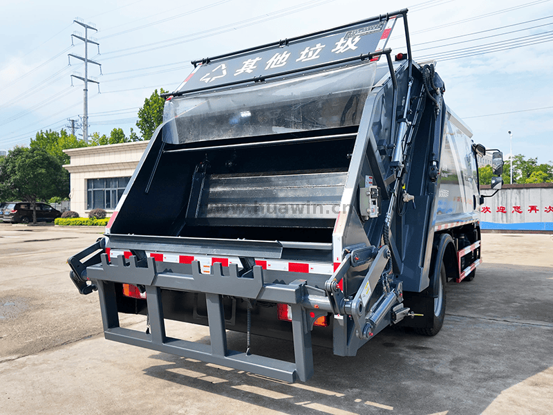 صديق للبيئة للغاية، ويتجنب التلوث الثانوي: يتم تركيب خزان تجميع مياه الصرف الصحي ذو سعة كبيرة في الجزء الأمامي السفلي من الحاوية، مما يحسن سعة تخزين مياه الصرف الصحي في السيارة ويحل مشكلة التلوث الثانوي أثناء نقل القمامة.